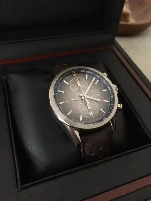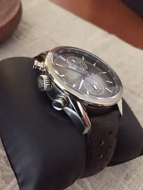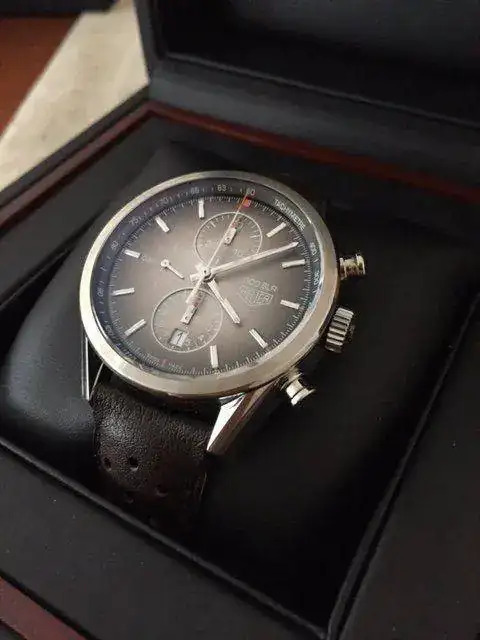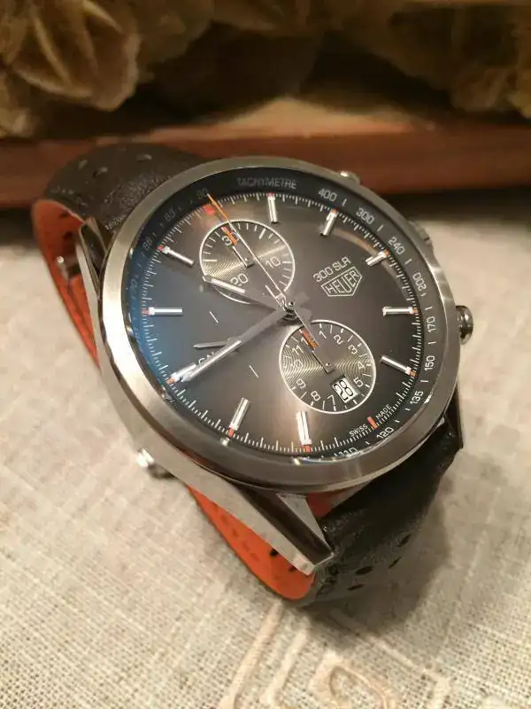 Toca sacar otro recién llegado. Se trata de este impresionante Carrera SLR 300 SE. El reloj se encuentra en un estado impecable. Solo tiene, siendo muy escrupuloso, un par de micro-pelos en las zona de pulido.