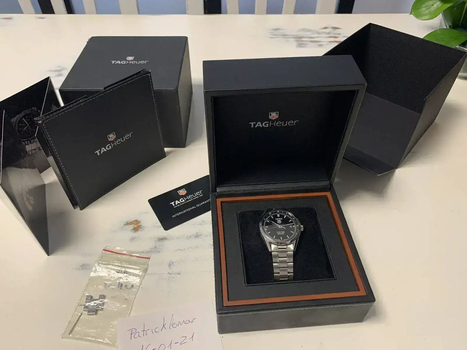 El reloj pese a los años que tiene podría pasar por nuevo puesto que solo lo he usado en ocasiones muy muy especiales, así que tendrá una docena o docena y media de puestas, no más. Una aclaración, he indicado año de compra 2013 porque me fue entregado en 2013 pero la garantía está sellada el 31-12-12. Gracias por el espacio al foro.