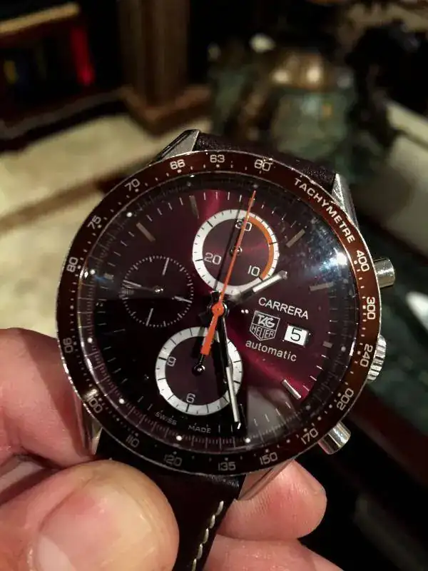 Hola a todos, procedente de un cambio pongo a la venta esta preciosidad de reloj, además de original por su particular color tanto de esfera como de bisel. El reloj tiene marcas de uso como podeis apreciar en en las fotos, el funcionamiento es perfecto. El cristal no tiene ninguna marca a pesar de lo que parezca en las fotos, en cambio el bisel si las tiene y a la caja le vendría de perlas un pulidito. La correa tiene uso pero esta perfecta, sin ninguna marca. No puedo aceptar cambios pues espero venderlo a tiempo para comprar otra pieza que está en el foro, en caso contrario lo retiraré de la venta.