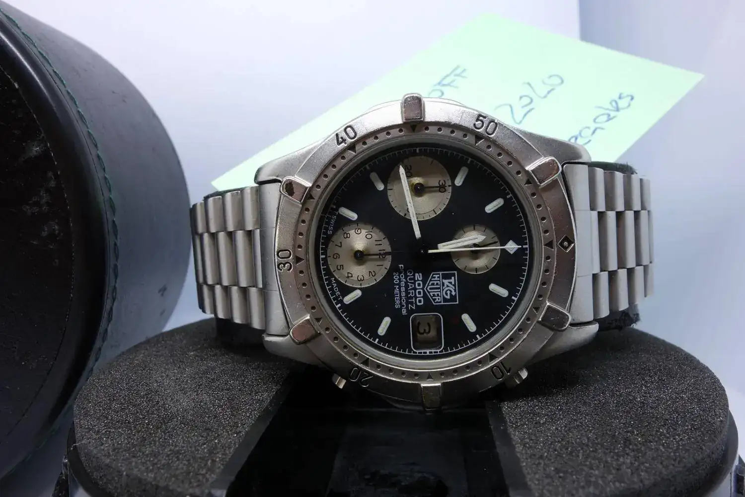 Los movimientos utilizados en la serie Heuer 2000 son bastante notables. Muchos piensan en el 2000 como un reloj de cuarzo de precio de entrada, pero en realidad este calibre es mucho más que eso. Tanto el cronógrafo de cuarzo como el cronógrafo automático utilizan el módulo cronógrafo Dubois Depraz 2000. El movimiento automático (LWO 283) combina el módulo DD2000 con la base ETA 2892, mientras que el movimiento de cuarzo (Calibre 185) utiliza un tractor ESA 555.XXX (también conocido como ETA 955.XXX).