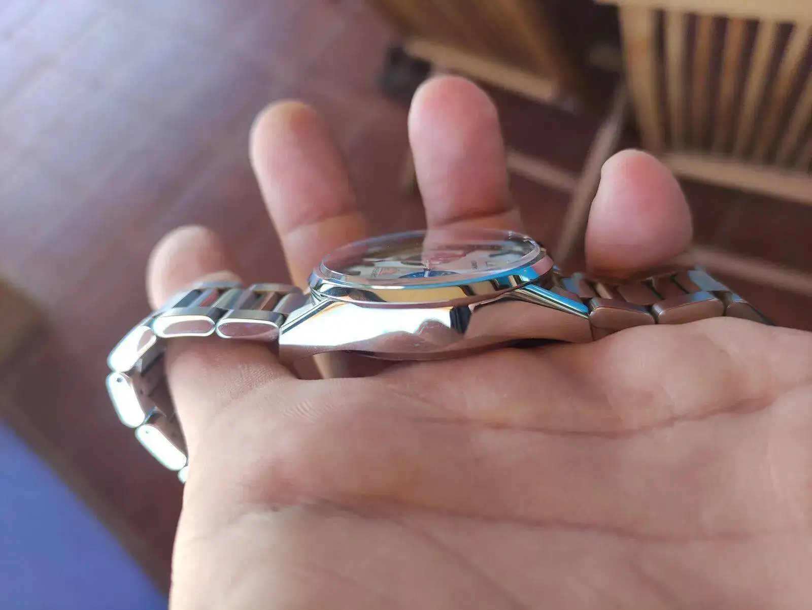 El reloj se encuentra en estado usado, pero muy bueno. Las fotos, de verdad que lo siento, quien quiera le envio todas las que quiera.