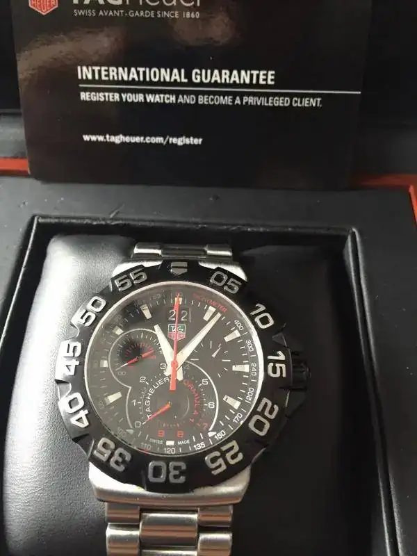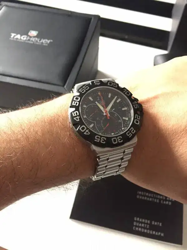 Agradeciendo al foro y moderadores la oportunidad que nos brindan me gustaría sacar a la venta un TAG HEUER Big Date. Un reloj deportivo y siempre un valor seguro, adaptado a los tiempos de tamaño supervitaminado (44mm muy aprovechados). Funciona perfectamente, con cambio de pila reciente en ECI no asegurando su resistencia a los baños veraniegos. Tiene su caja con la garantía caducada y los eslabones sobrantes. No tiene marcas salvo un pequeño detalle en las letras laterales que han perdido parte de su esplendor original. Sale en un precio muy interesante para una venta rápida.