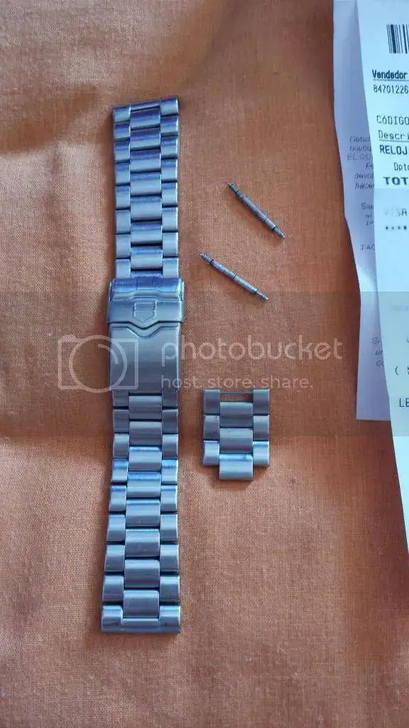 Viene con todo el set completo su caja de cartón, caja de plastico, libro de intrucciones, tarjeta de garantía y su armis original completo. Esta ajustado a 17cm pero se acompaña de sus eslabones sobrantes. La correa de caucho fue comprada el 12 de mayo de este año tiene mes y medio para que os hagais una idea de su uso (adjunto tiket de compra).