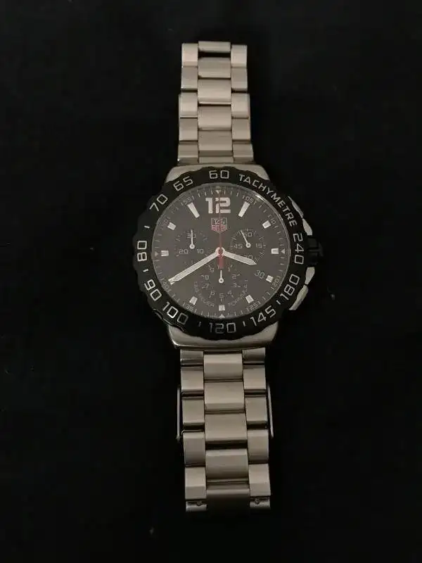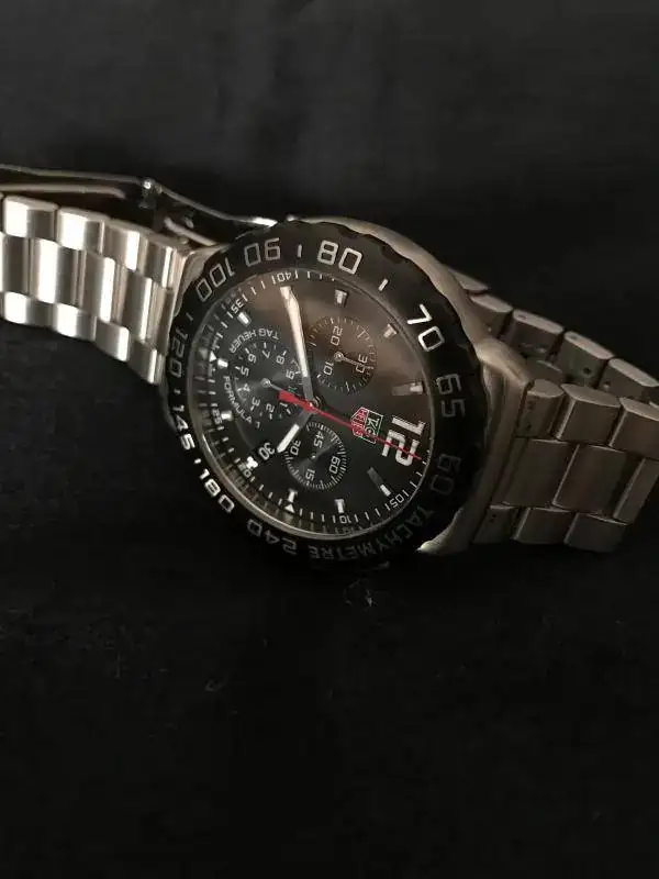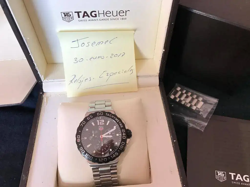 Vendo Tag F1 crono modelo actual. Se trata del CAU 1110, el reloj se encuentra en muy buen estado, únicamente presenta pelillos propios del poco uso que ha tenido. Como se puede apreciar en las fotos, se entrega con set completo de estuche (algo estropeado), documentación y eslabones sobrantes. Su precio es de 850€ puesto en casa por MRW o correos cerificado. Cualquier duda o consulta será gustosamente atendida mediante privado.