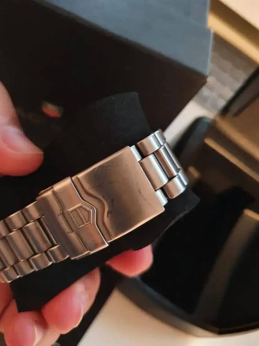 El reloj no tiene signos de uso destacables quizás lo único alguna pequeña marca en el cierre (ver última foto), conserva intacta la pintura de las letras del lateral de la caja que es de lo primero que pierde si el uso es intenso, de los números del bisel y del logo de la corona.