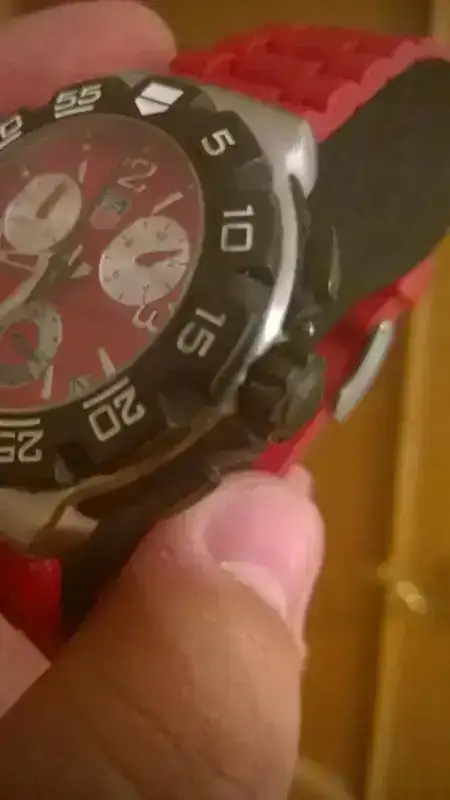 Sólo tiene un defecto en uno de los embellecedores de los botones del chrono, que ni afectan al uso, ni al boton, ni se aprecia puesto casi y que además supongo que será fácilmente reparable por TH.