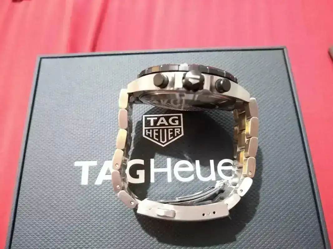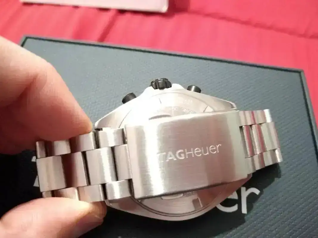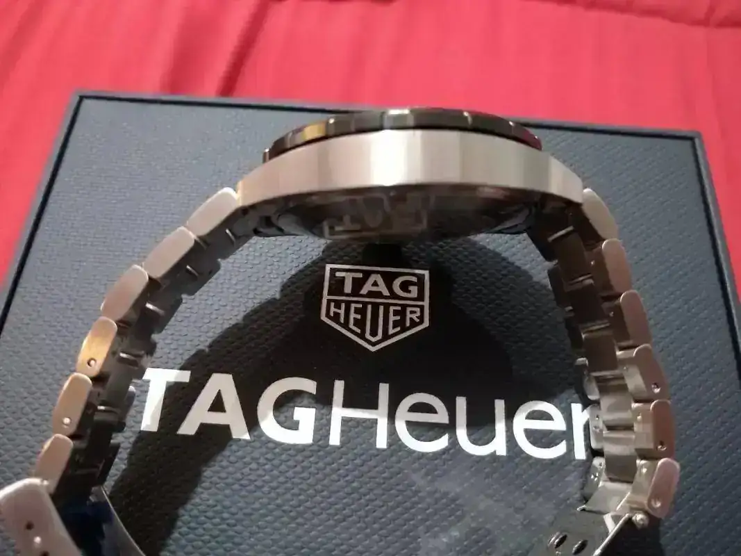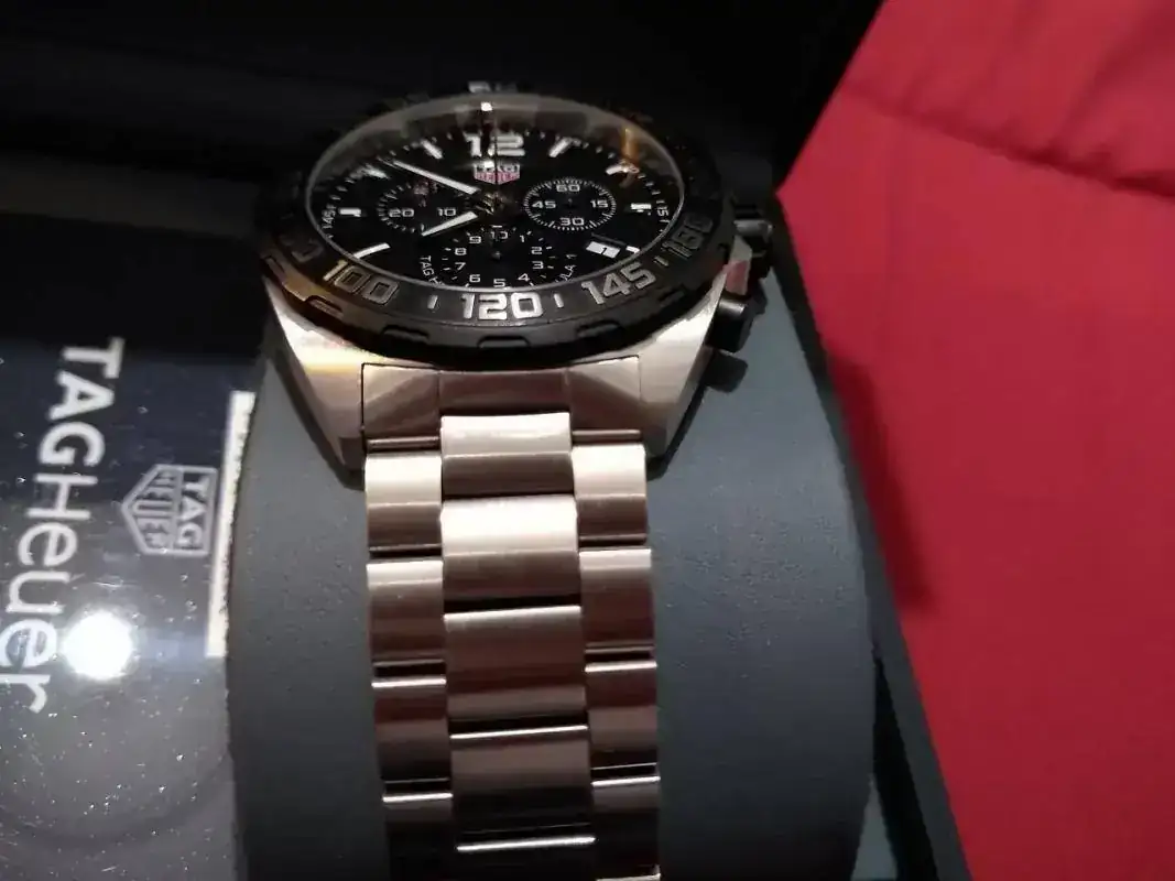Saco este Tag Heuer comprado en mercante del Foro en octubre de 2019. Modelo Formula Chrono WR200m. Venía con caucho, lo vendí y compre el armis original (PVP 230 euros) que es el que lleva montado y con el que se vende. El reloj está nuevo, excepto un pelillo en el eslabón de enlace, que prácticamente ni se ve pero está y hay que decirlo. Por lo demás como nuevo: zafiro, bisel, cierre impecables.