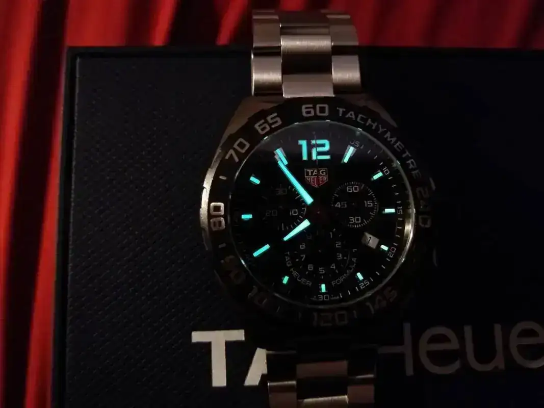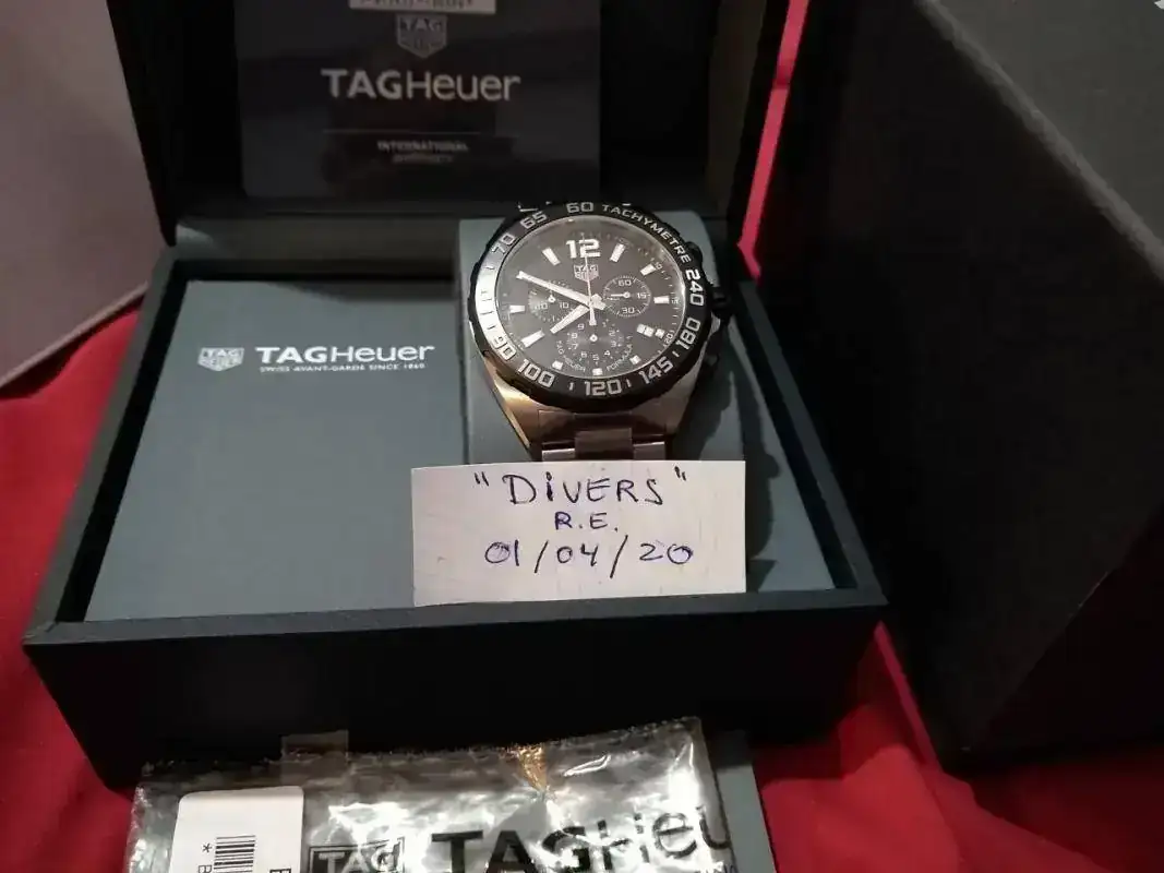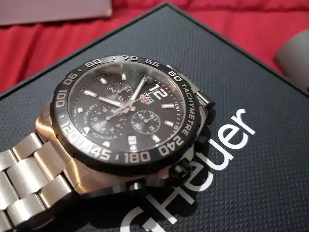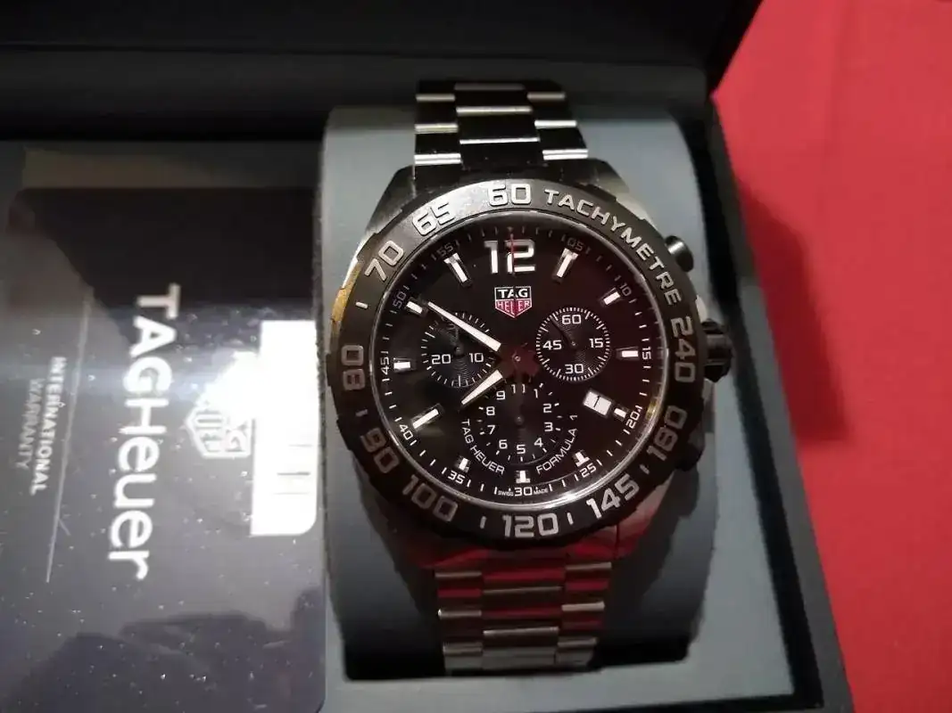 Saco este Tag Heuer comprado en mercante del Foro en octubre de 2019. Modelo Formula Chrono WR200m. Venía con caucho, lo vendí y compre el armis original (PVP 230 euros) que es el que lleva montado y con el que se vende. El reloj está nuevo, excepto un pelillo en el eslabón de enlace, que prácticamente ni se ve pero está y hay que decirlo. Por lo demás como nuevo: zafiro, bisel, cierre impecables.