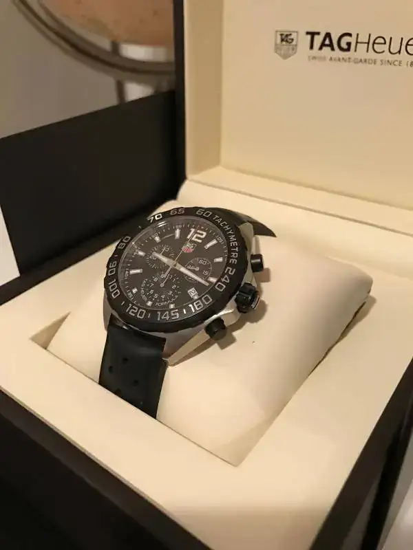 con todo el dolor de mi corazón pongo en venta este fantástico tag heuer formula 1 movimiento de cuarzo, esta perfecto, desde mi punta de vista podría describirlo como reestreno, ya que no tiene apenas puestas y ninguna marca en ningún lado, lo vendo ya que quiero subir un escalón también dentro de la marca, pongo las fotillos pero no se aprecia lo bien que esta, por lo que si necesitáis alguna mas, os la enviare por privado.