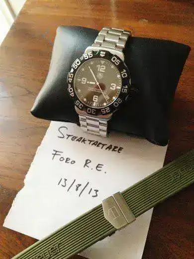 Se trata de un precioso Tag Heuer Formula 1, modelo WAH1113 en un estado impoluto. Diría que al 99,8 por ciento. El modelo original viene con el caucho que puede verse en la foto, con cierre deployante de los modernos. El caucho está sin acortar. Además, el reloj viene con el armis original de Tag Heuer. Es desde mi punto de vista uno de los modelos de Formula 1 más bonitos que se han fabricado. Además, lo dejo en un precio de risa: 430 euros. Prácticamente sin uso, como denota el estado extraordinario del armis y del caucho (el deployante tiene algún pequeño arañazo, inevitable en este tipo de superficies.