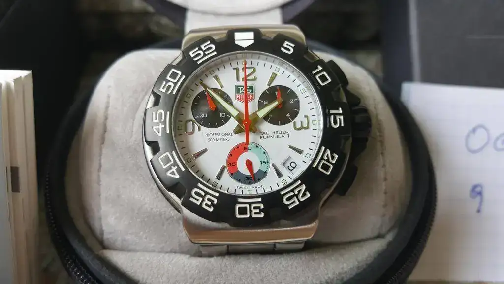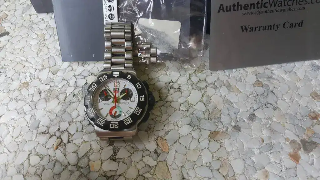 Pongo a la venta este Tag Heuer Formula 1 comprado por mi en el 2005 en USA, el reloj según llegó ha salido de su caja en 4 ocasiones, prácticamente está seminuevo, puede considerarse en un 95% aunque no hay ningún problema en que si el vendedor no lo considera así me lo devuelva, los gastos de reenvío por supuesto de su cuenta, se aprecia algun roce en el cierre del armis, nada importante , igual es que yo no soy muy tikismikis en estos casos, puede ser.Consta de toda su documentación, caja exterior, caja principal, libro de instrucciones, eslabones sobrantes, tarjeta de garantía del vendedor AutenticWatches ya no en vigor por supuesto.