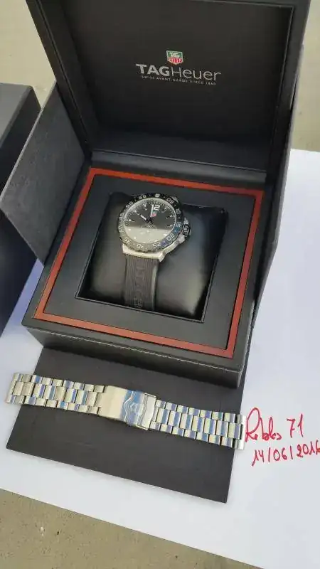 Para este modelo no acepto cambios, se entrega con su dotación completa, correa de caucho original del reloj y una correa de acero original de la marca TagHeuer con eslabones sobrantes comprada en distribuidor oficial, SIN pelillos en el cierre como se ve en las fotos.