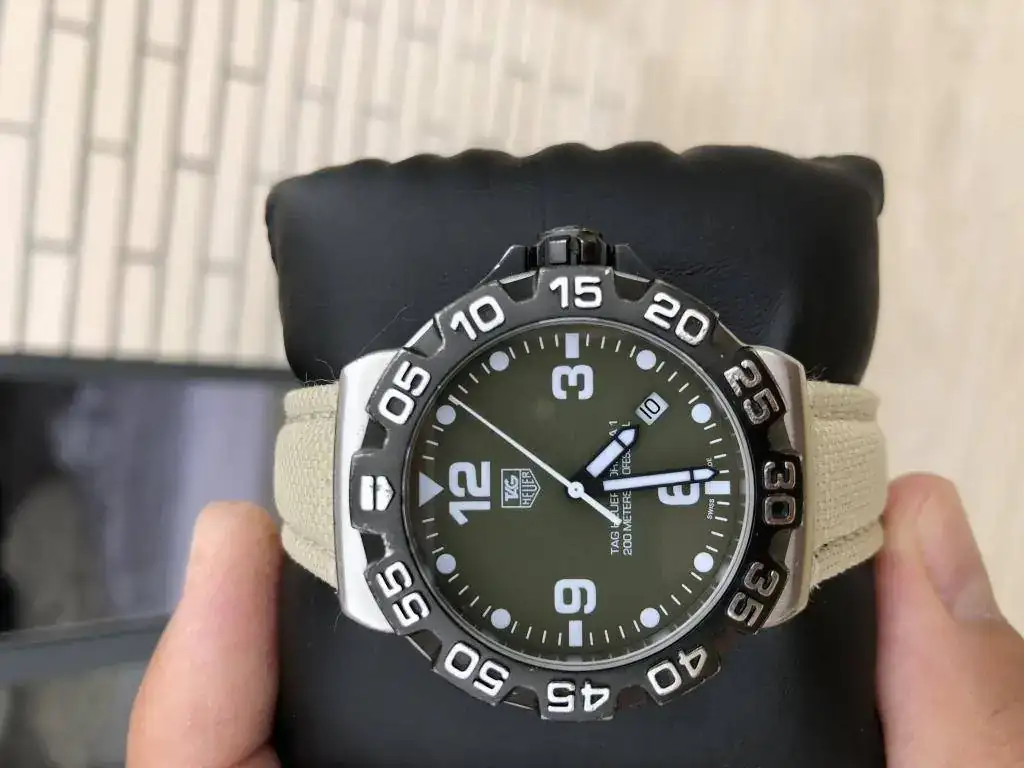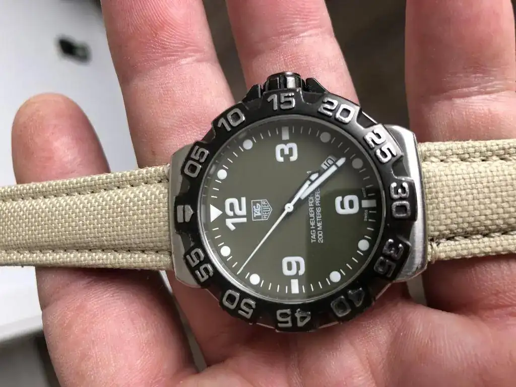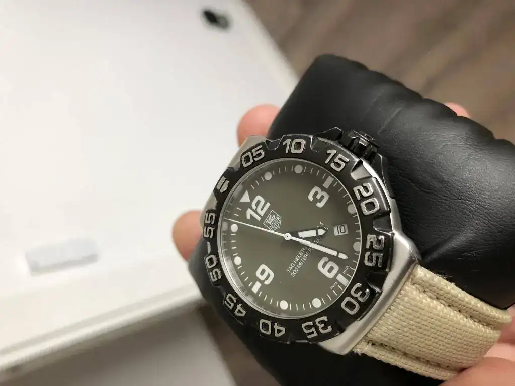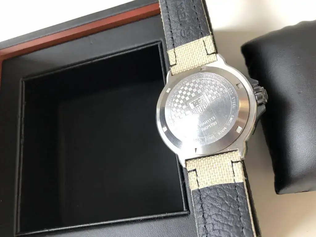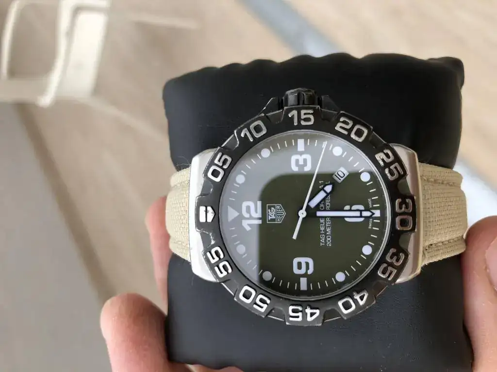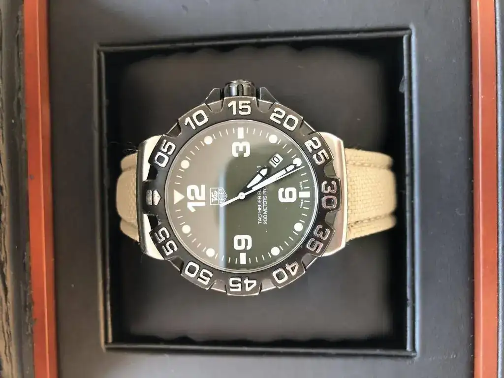 Saco a la venta este Tag Heuer Formula quartz, 41mm sin contar corona, cristal de zafiro, 200 metros, corona roscada, correa nueva canvas marca EB, entrego el deployante original tag heuer por si alguien quiere ponerle una de caucho. Presenta sintomas de uso, basicamente desgaste en el bisel que es negro pvd y tiende a perder color (ver fotos) . Comprado en Rabat Barcelona en 2011 viene con su caja, manual de instrucciones y tarjeta de garantia sellada y fechada en 2011. Se acepta entrega en mano en barcelona y en cualquier punto de venta Tag Heuer. No cambios ni relojes a cuenta por favor, le pongo un precio bueno para salida rapida