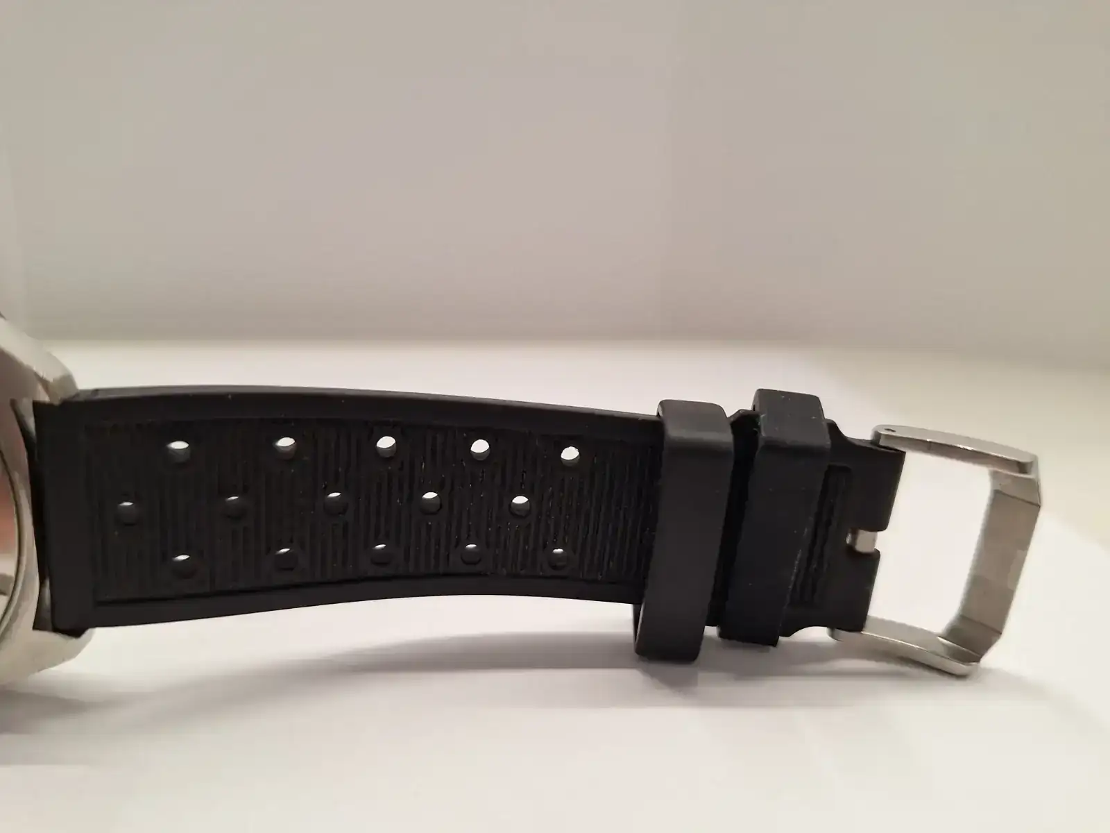 El reloj es muy bonito, está en un estado muy bueno y funciona perfectamente. La correa prácticamente sin uso, tan solo domada de estar el reloj guardado en su caja. Como "pero" apuntar el grabado que lleva en la tapa trasera que aunque está hecho de forma que no desentona entiendo que haya a quien pueda molestar.