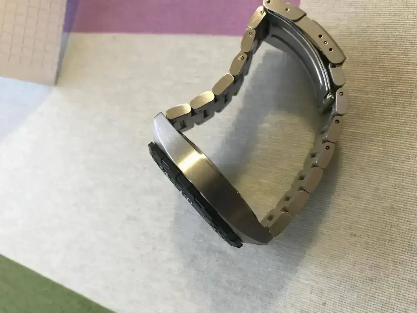 El reloj se encuentra en muy buen estado. Solo tiene ligeras marcas de uso en el armis y el cierre. Si antiguo propietario lo utilizó en contadas ocasiones, por lo que estaba parado en su mayor tiempo.