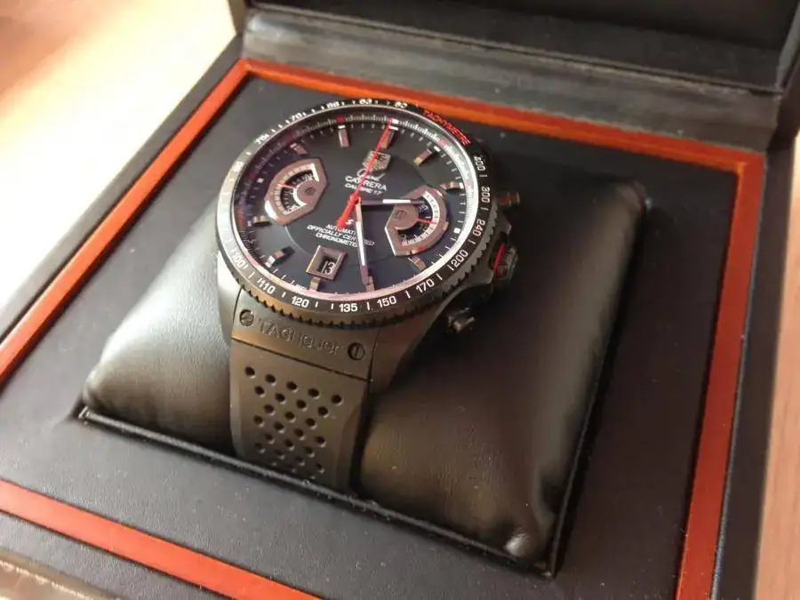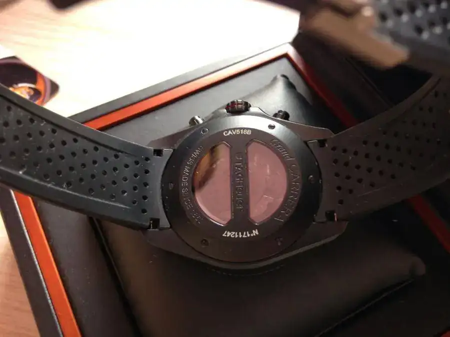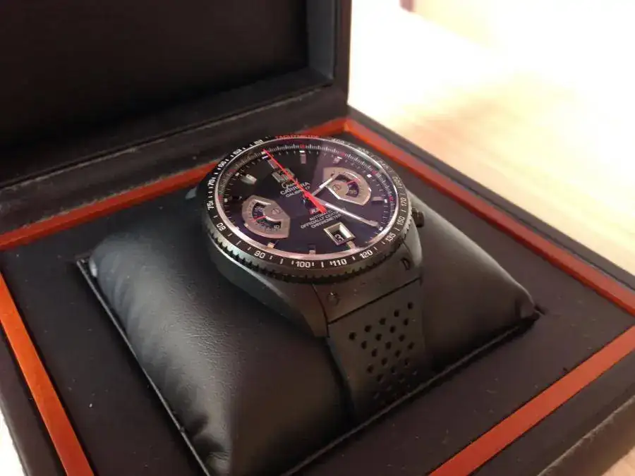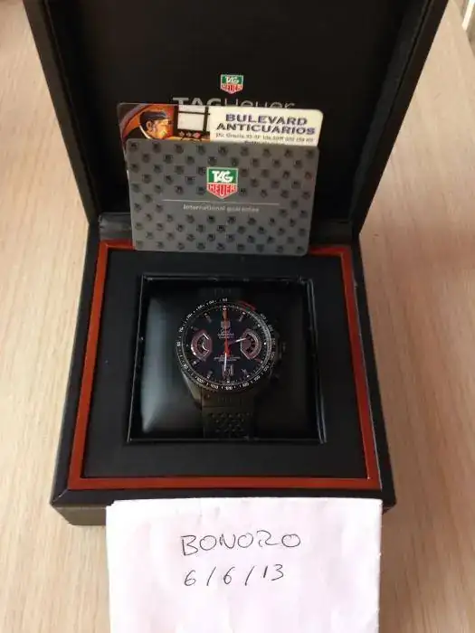 El reloj ha sido comprado a un mercante de Barcelona hace un par de meses, por lo que tiene casi 10 meses de garantía de dicho mercante. El reloj esta en perfecto estado, el zafiro y su espectacular antireflejos están impolutos y el reloj también se encuentra en perfecto estado, solo destacar algunas leves marcas en el cierre que se ven en las fotos. El reloj viene con la caja tag heuer de la fotos, que si que tiene alguna que otra marca, ya que como me comento el mercante, el propietario original lo uso muy poco y tenia guardada la caja en el armario con bastante ajetreo, por lo que si que tiene mas marcas.