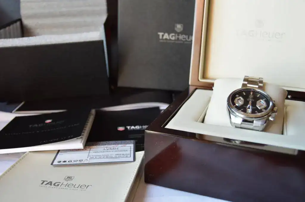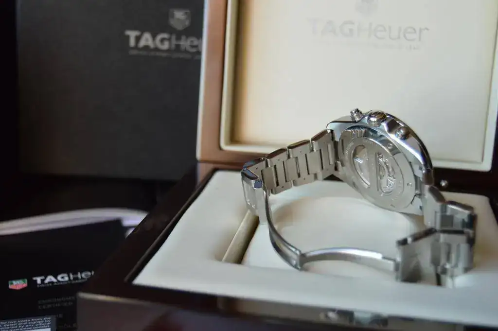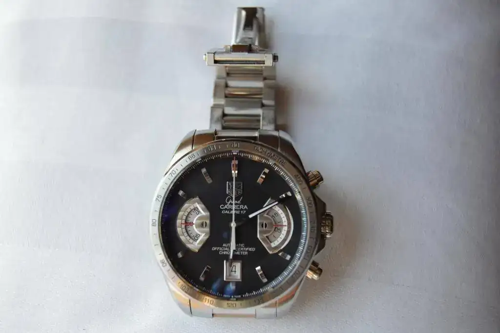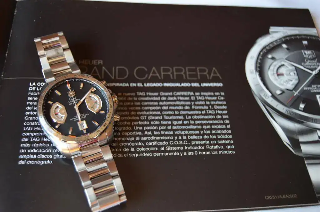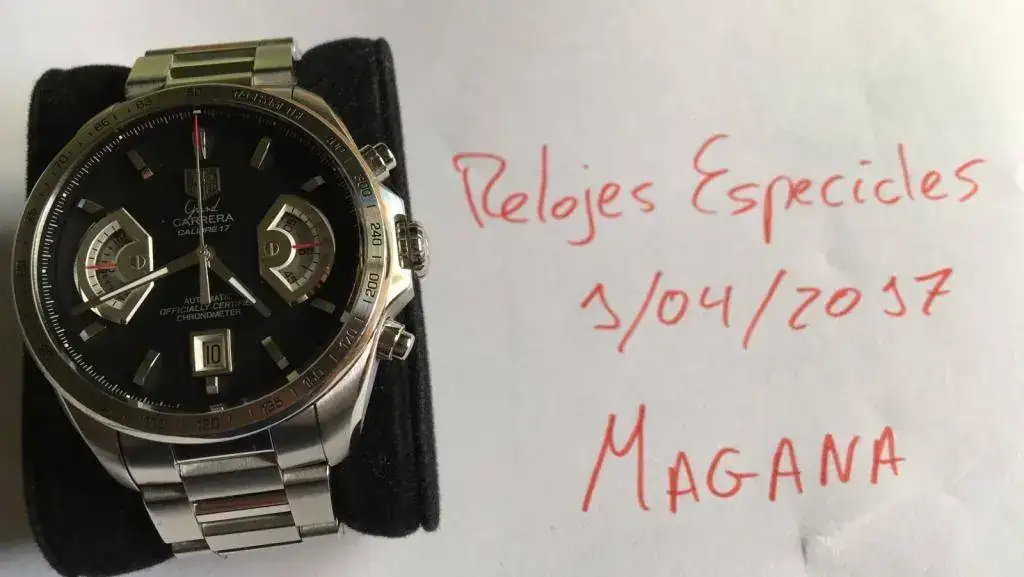 El sacrificado es un Tag Heuer Grand Carrera Calibre 17 que compré nuevo en CO nacional por lo que soy su único propietario. El reloj tiene uso, tiene algunos pelillos en el armis, pero ha sido usado con cuidado.