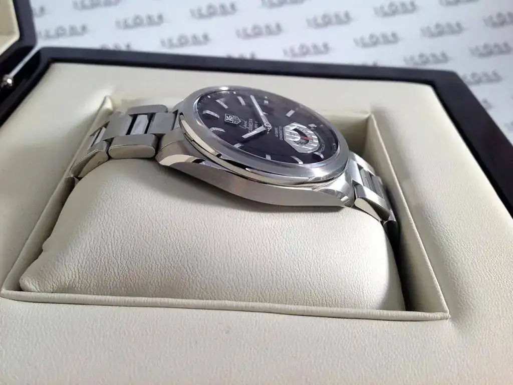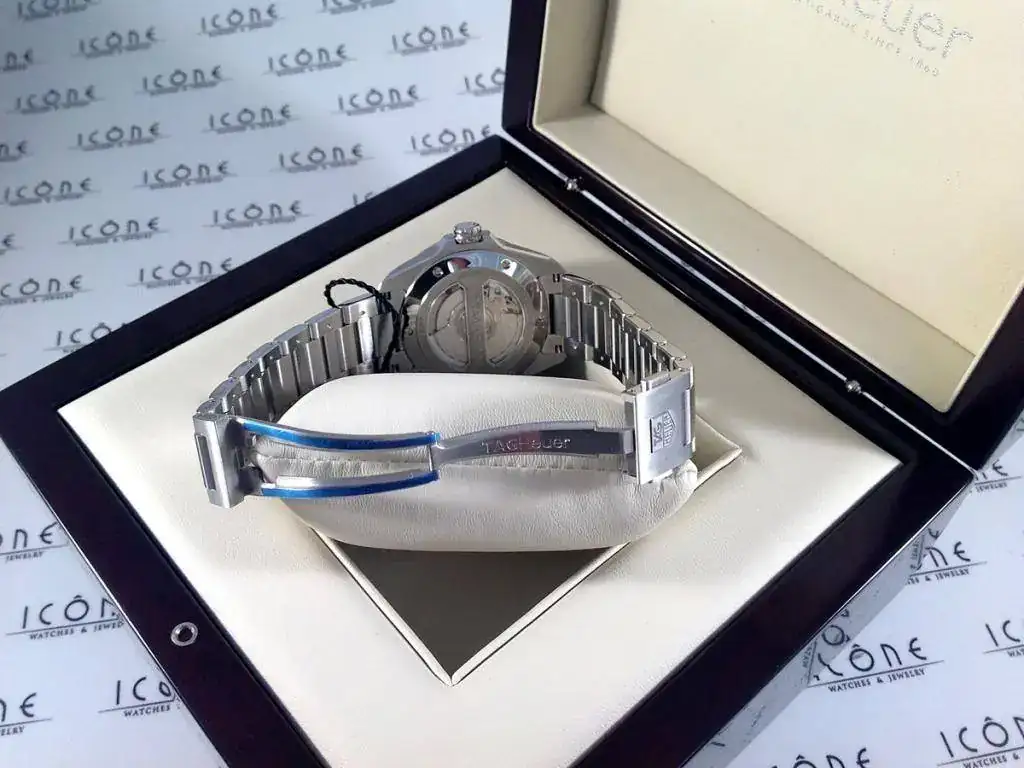 Sus características son: Reloj automático con caja de acero de 41 mm., armis Tag Heuer con cierre desplegable oculto, cristal de zafiro, calibre 6.