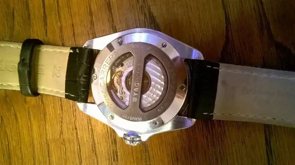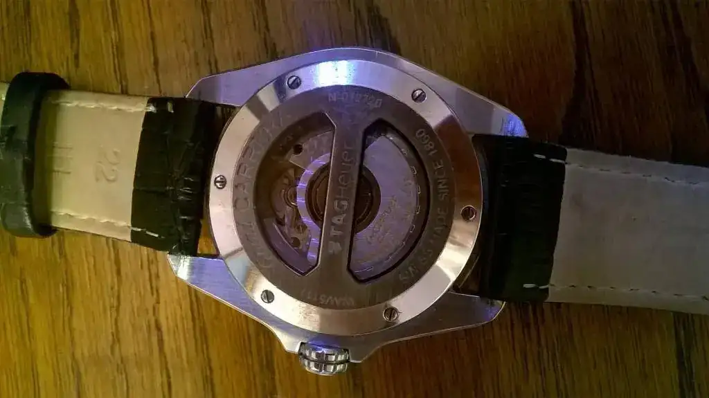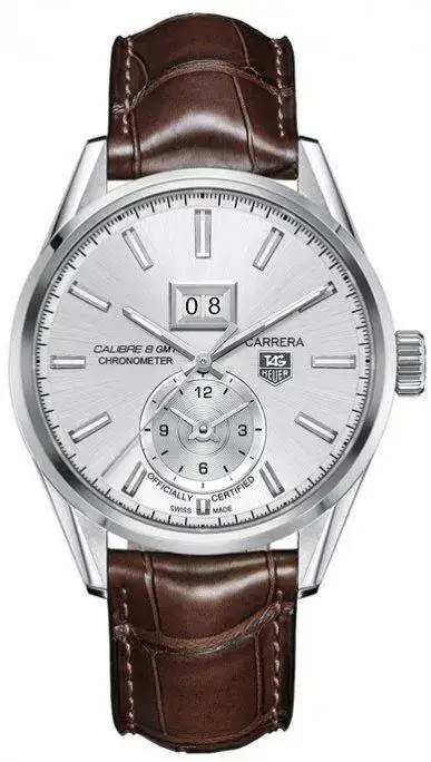 Se trata de un Tag Grand Carrera calibre 8 (eta 2892 modificada) que posee un rasgo característico para marcar otros usos horarios.