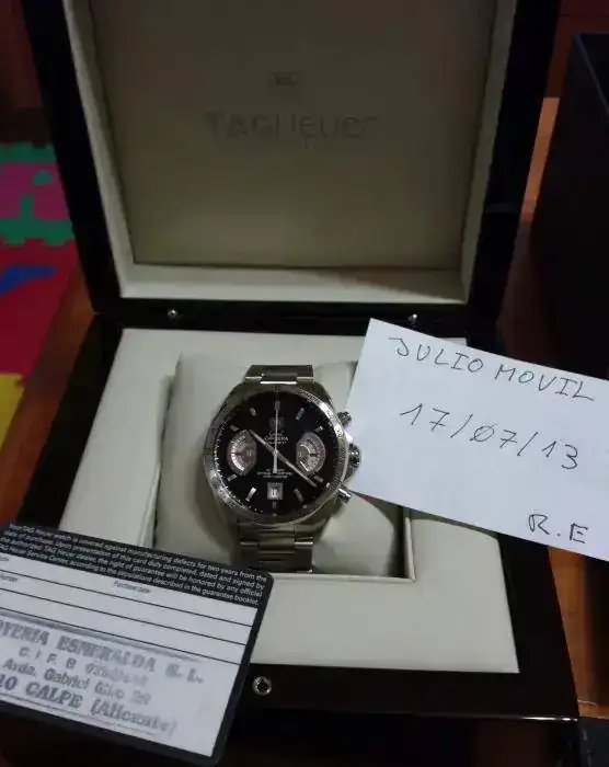Se vende o mas bien se cambia este estupendo y impoluto TAG HEUER GRAND CARRERA CHRONO 17 RSel estado es de 99,9 de 100 y esta completo garantia sin fecha.el precio de venta será 2.950€ gastos incluidos por nacex 24 horas.pero me interesa mas cambiarlo por algun modelo que me pueda gustar agustando dinero a poder ser a mi favor.aqui unas fotos de este movil precioso