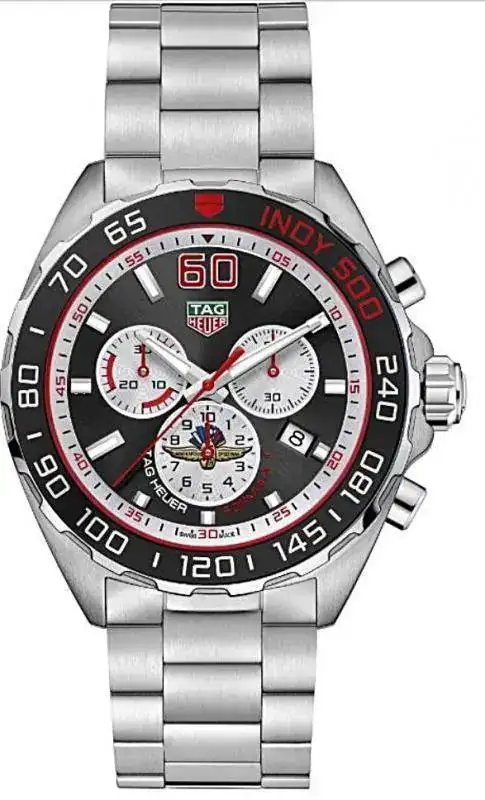 El primer reloj Indy 500 Special Edition que la marca de relojería suiza lanzó fuera de Estados Unidos. El modelo TAG Heuer Fórmula 1 Indy 500 Special Edition es un especial cronógrafo de 43mmde diámetro estrechamente vinculado con la histórica carrera. El logo de Indy 500 destaca en el contador a las 6. El TAG Heuer Fórmula 1 - Indy 500 Special Edition se presenta en un estuche especial.