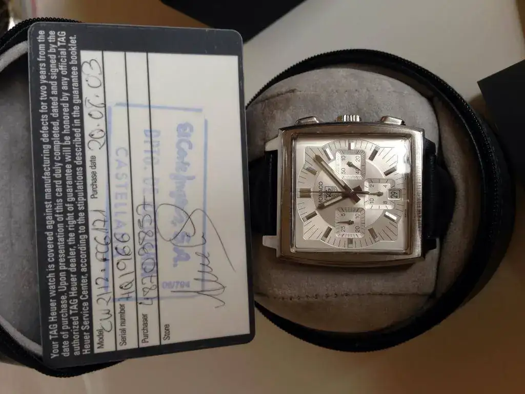 Saco a la venta este Tag Mónaco chronograph, calibre 17, buen estado, correa en más de media vida por delante, año 2003 como se puede ver en la tarjeta de garantía.