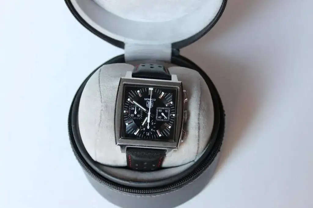 Hola a todos ,pongo a la venta, este maravilloso Tag Heuer Monaco Crono que como podéis observar esta en perfecto estado, como es evidente todo funciona correctamente, tiene dos correas, la original de cocodrilo negro, en muy buen estado, y otra comprada de piel negra y ribete rojo que le da un aspecto sport muy elegante.
