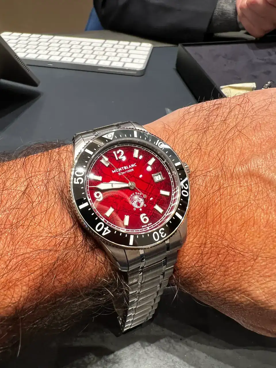 Muy buenas, con la intención de comprarme un reloj con esfera verde, me he acercado a Quera Donosti, a probarme el Tag Heuer aquaracer, y la verdad es que es precioso ( las fotos no reflejan la realidad de los brillos de las aguas de la esfera), pero quería compararlo con el Longines Hidroconquest, y al no tener este modelo en tienda, me han sacado un Montblanc con esfera roja que me ha llamado la atención en una vitrina y me ha sorprendido gratamente. Que os parece a vosotros? Cuál os gusta más para vestir?