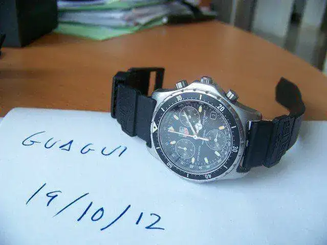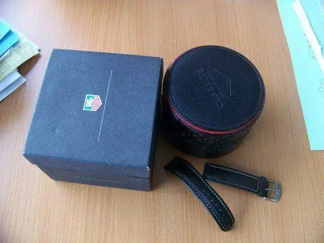 Lleva una correa Tag de goma de la época, también una correa de cuero genérica ya con uso y con hebilla Tag. La caja y el estuche son los que veis. Hace un año se le hizo el cambio de pila y la estanqueidad aunque nunca lo he metido en el agua.