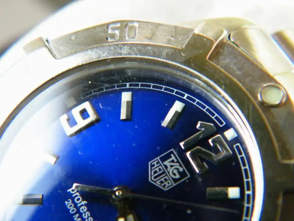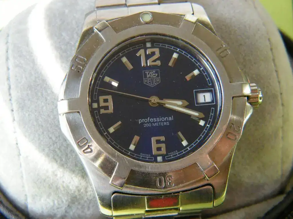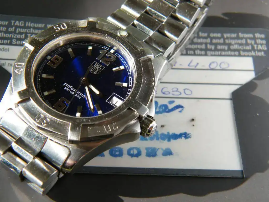 Vendo este Tag modelo WN 1112 sumergible 200 m. Se trata de un reloj comprado por mí para hacer un regalo (poco acertado) y por tanto pongo a la venta. En mi opinión posee una atractiva esfera de azul intenso, ha sido muy poco llevado sin ninguna señal reseñable salvo dos minúsculas en el bisel exterior al lado del número 50.