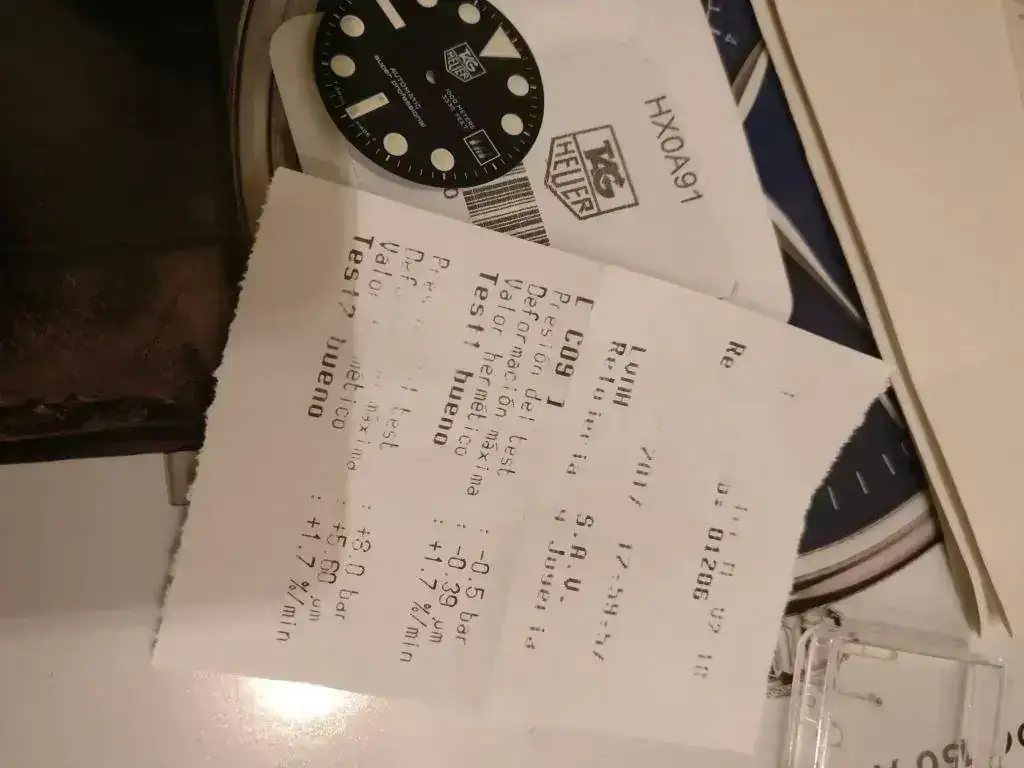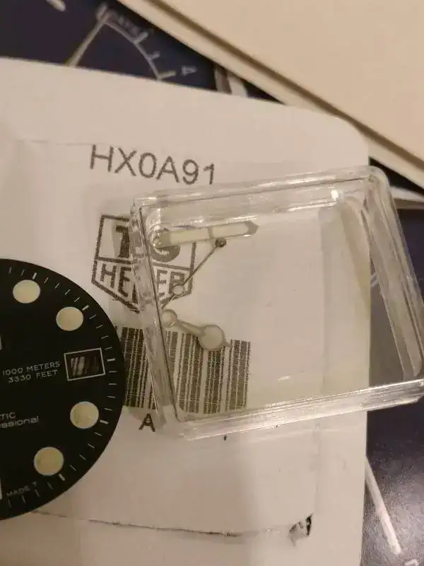No dispone de caja ni papeles, pero si entrego 2 esferas y 2 juegos de agujas. Ambos originales. Uno de servicio y luminova que lleva puesto. Además del original de tritio, esfera y agujas.