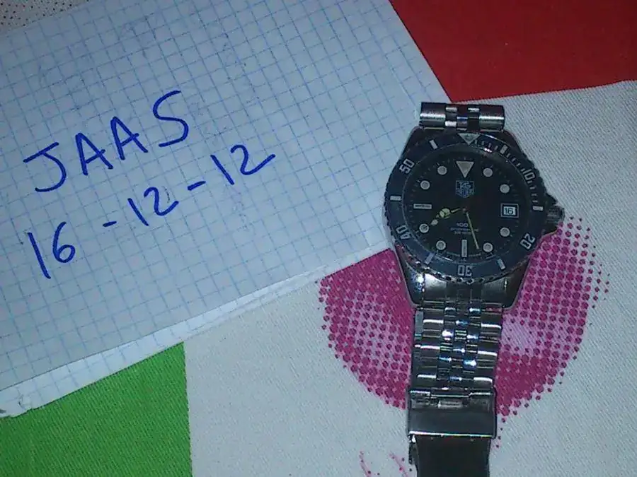 VENDO RELOJ TAG HEUER DIVER 200 mt DE LA SERIE 1000, EL RELOJ ESTA EN BUENAS CONDICIONES, EL BISEL TIENE ALGUNAS MARCAS. UN DEFECTO QUE TIENE ES QUE CUANDO LLEGA AL DIA 22 NO CAMBIA DE FECHA AUTOMATICO PERO LA HACEMOS MANUAL Y YA TODO CORRECTO.