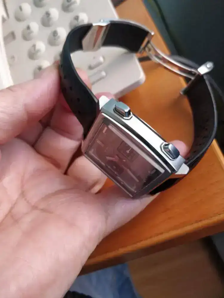 Buenas noches compañeros, saco este Tag Mónaco a la venta, en gris que no está tan visto; está en buen estado y la correa que tiene es prácticamente nueva, lamento la calidad de las fotos que he hecho con luz artificial pero al natural luce mucho más, te puedo enviar más fotos si te interesa claro, estoy abierto a cambios si me gusta el reloj que me ofreces aunque mejor venta.