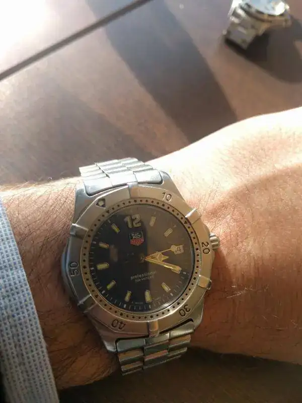 Hoy he vuelto a ponerme, después de años sin hacerlo mi Tag de cuarzo. Fue mi regalo de pedida hace mas de 19 años y en aquella época no me lo quitaba de la muñeca, pero pasaron los años y la llegada del Submariner y después de un IWC lo dejaron en el banquillo durante una laaarga temporada. Hoy ha vuelto.