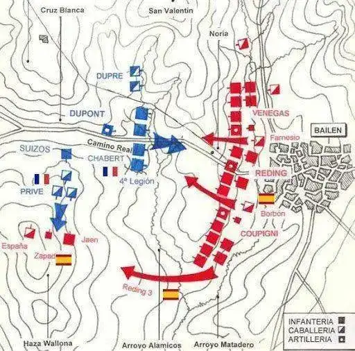 Viendo que la situación se volvía en su contra y que los refuerzos de Castaños podían llegar en cualquier momento, Dupont ordena lanzar una última ofensiva que él mismo encabezará y en la que participarán los marinos de la Guardia Imperial, las tropas de élite del francés. La carga de los 3300 soldados era un ataque a la desesperada que podría haber dado la vuelta a las tornas de la batalla, pero no fue así. Los españoles resistieron como llevaban haciendo todo el día y la derrota de Dupont, que resultó herido, fue clara. El experimentado general francés había sido vencido por un ejército de voluntarios al que días antes había despreciado.