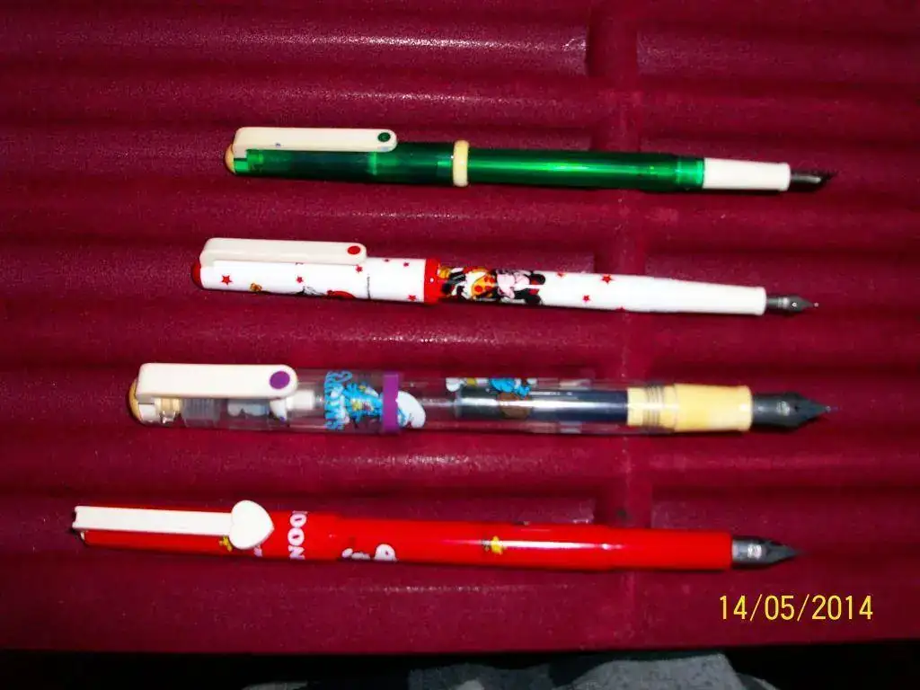 El primero es una pluma de estudiante. Una humilde Sailor "demostrador" de fantasía destinada al público infantil y juvenil. Se distribuyó en España durante muy poco tiempo; ignoro los motivos. Pero es una buena muestra de que la actual línea de entrada japonesa, con plumas magníficas como la Preppy o la Candy, tuvo sus humildes precursoras.
