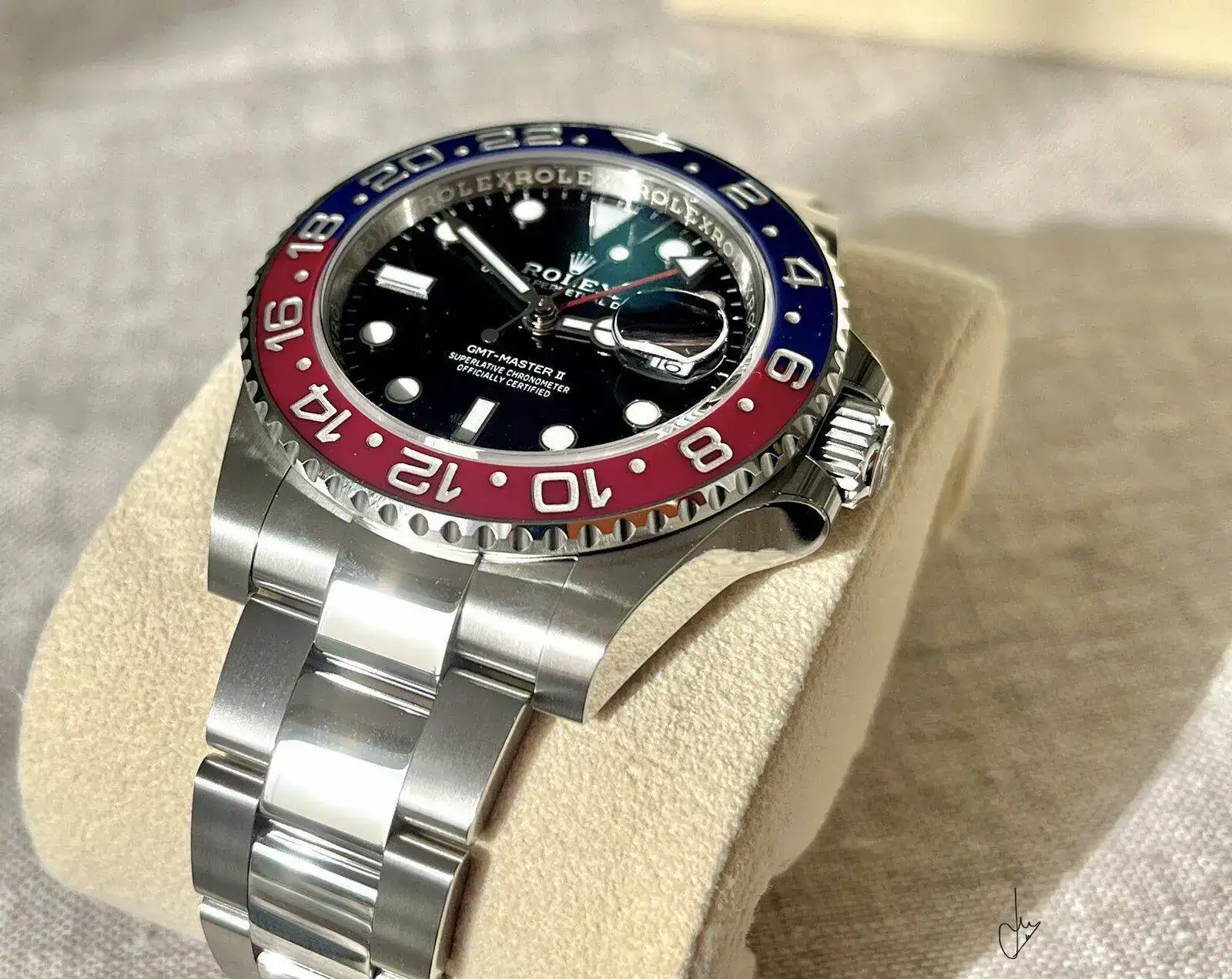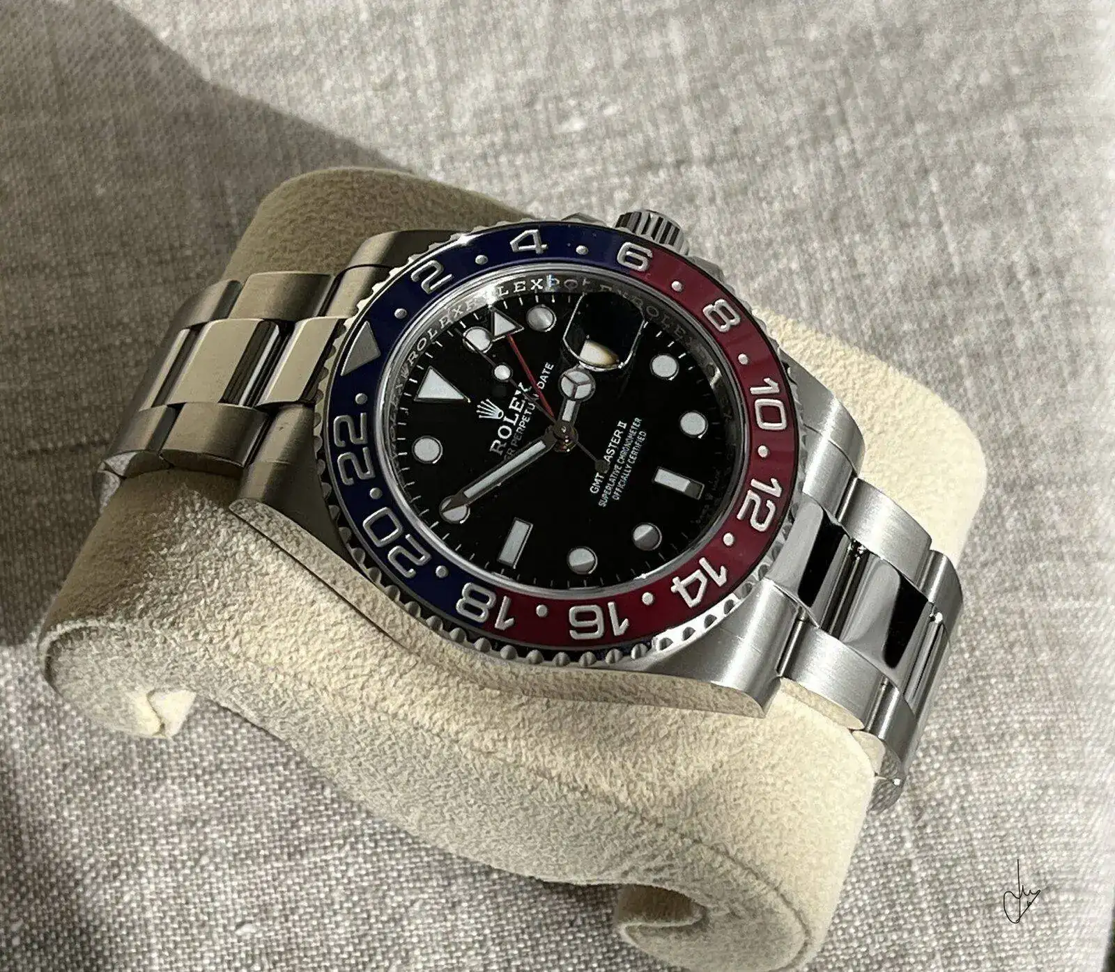 Disfrútalo para toda ocasión y sin contemplaciones. Enhorabuena!Hola a todos os presento la última incorporación a casa, el gmt máster II, llegó el día de mi cumpleaños el 8 de diciembre y por pitos o por flautas no lo presenté en ese momento. He de decir que no le estrenado todavía, esperando a que haga un mejor tiempo y no tengamos que ir con abrigos y manga larga para Que luzca bien(casi siempre ando igual con los relojes nuevos, no me les pongo hasta un cierto tiempo, cosa curiosa). Bueno y nada mas, que a falta de un buen vintage 1675, me conformo con esta preciosidad. Os dejo con unas fotos un poco así. Un saludete.