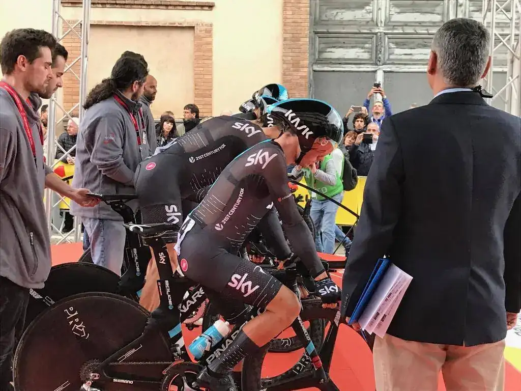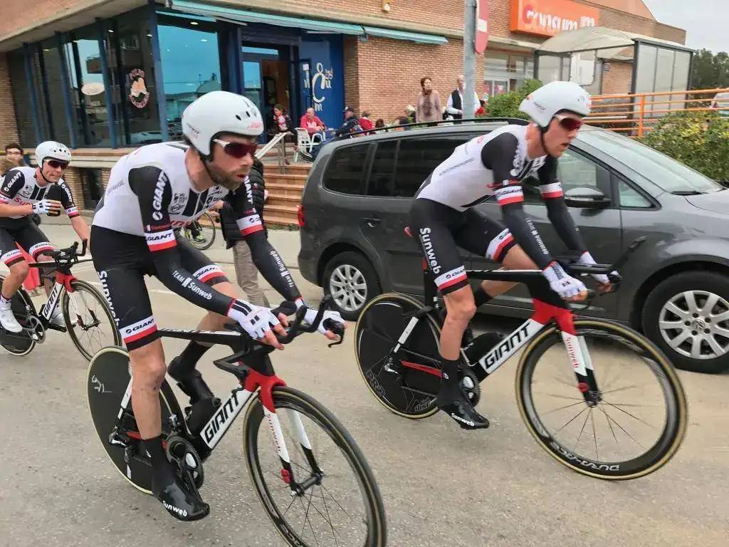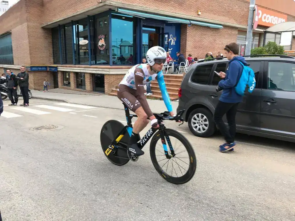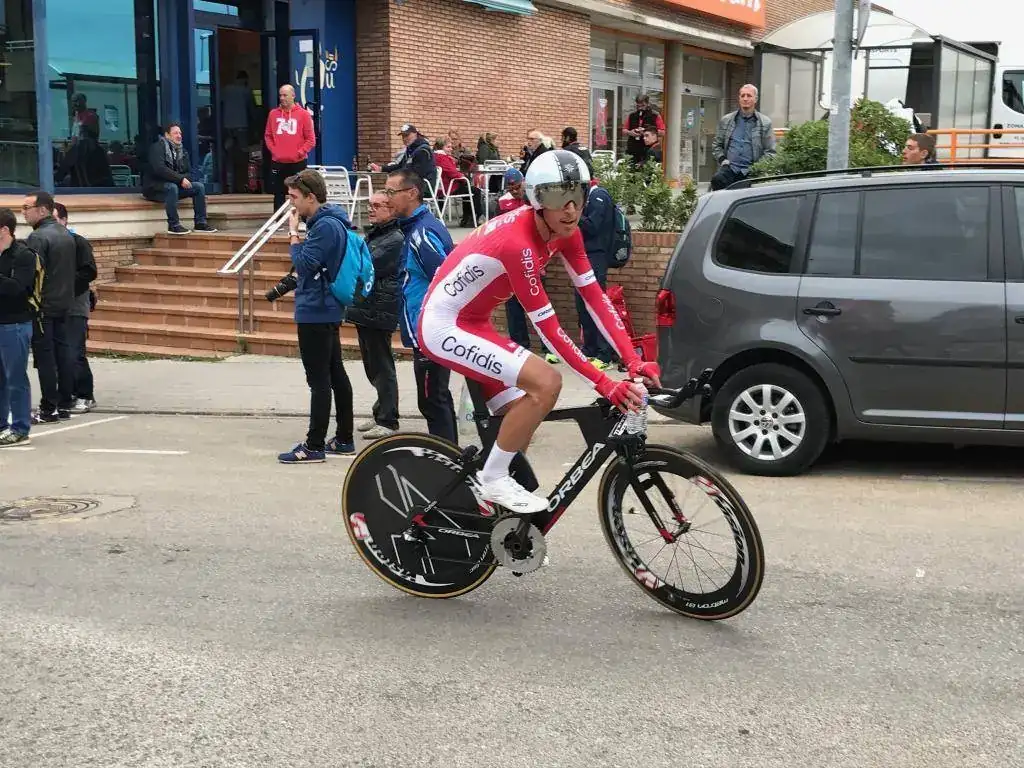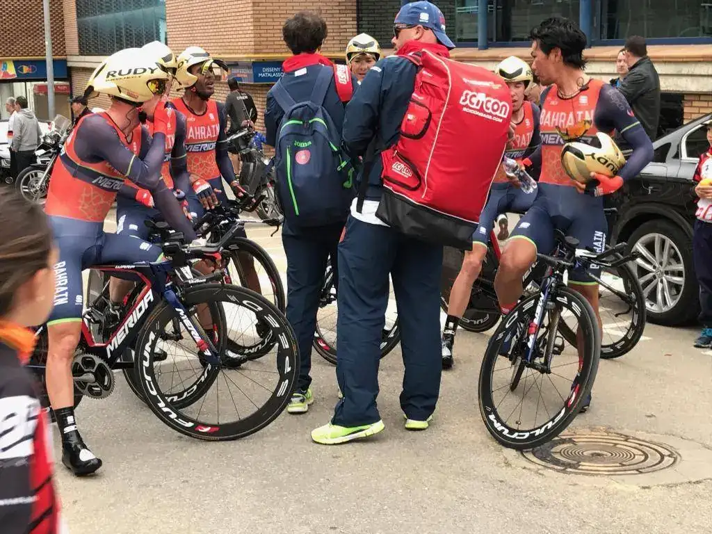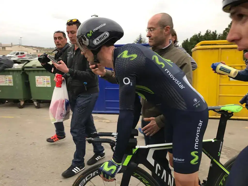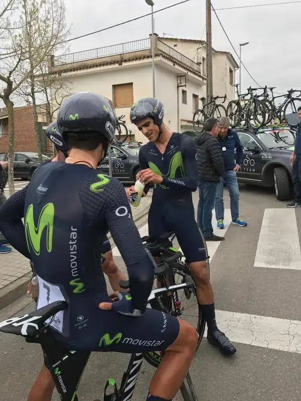 Andrei Amador comentando la contrarreloj con sus compañeros