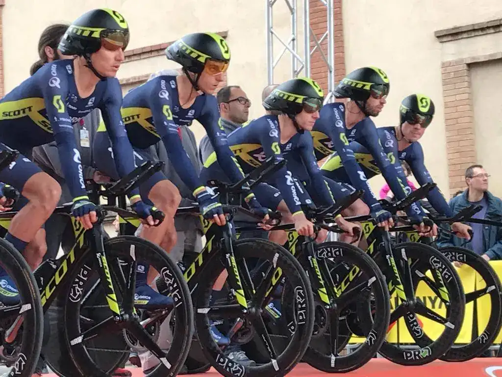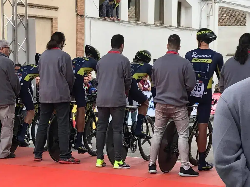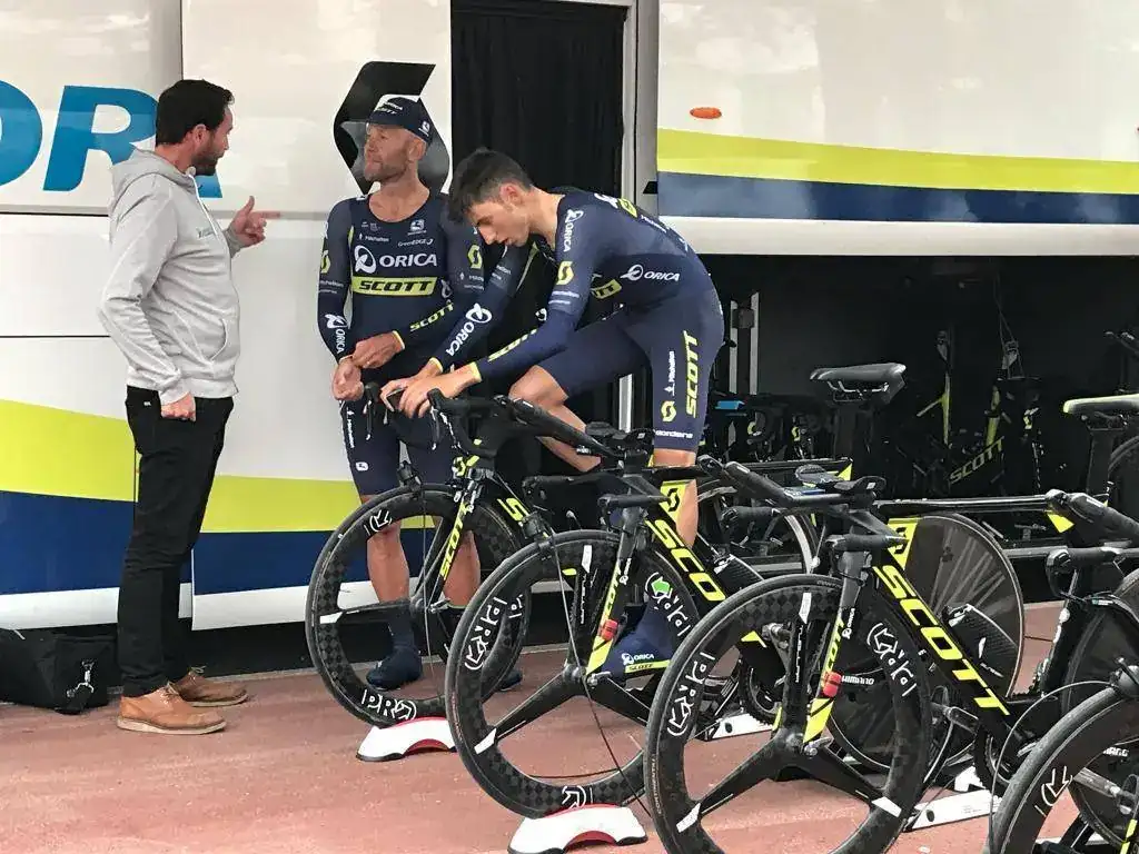 Equipo Orica, Carlos Verona es el segundo por la izquierda y Adam Yates el tercero