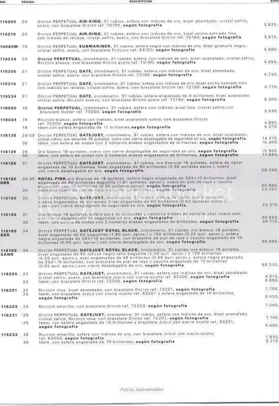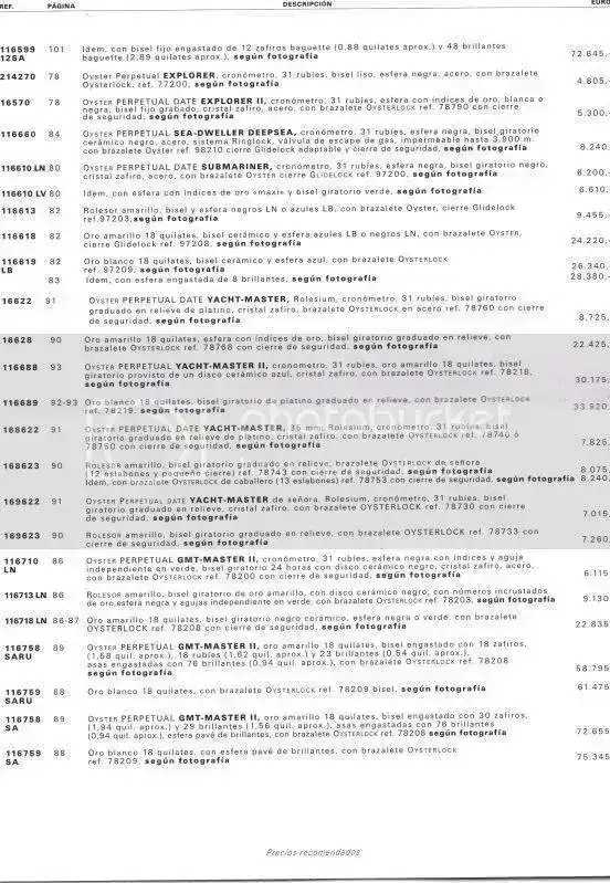 Como ya habia visto en el foro, habia subida, pero os pongo unos ejemplos de los mas deseados...submariner 14060m 4890 euros