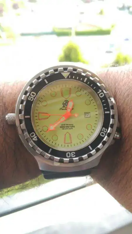 Hola buenas compañeros del foro quería compartir con vosotros unas fotos del reloj que me llegó hace aproximadamente un mes este Tauchmeister con calibre miyota 6L76 cuarzo, la verdad que antes no conocía esta marca pero un compañero de trabajo le vi el reloj y desde que lo vi me enamoré del diseño de estos relojes la verdad
