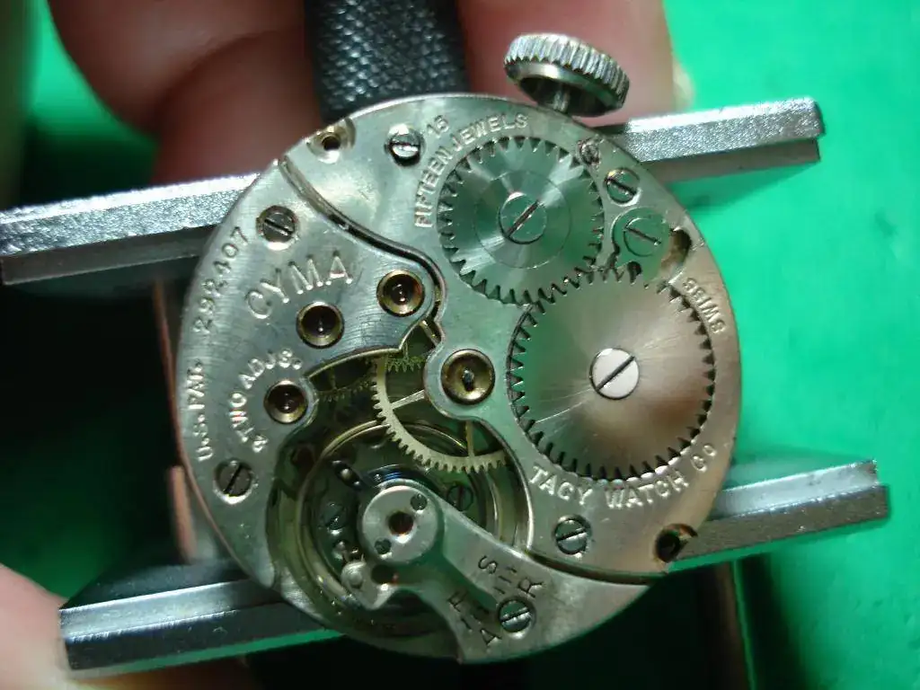 El calibre es claramente familia directísima del de mi Cyma recién rescatado; no sé cuál será la diferencia, pero las similitudes son evidentes