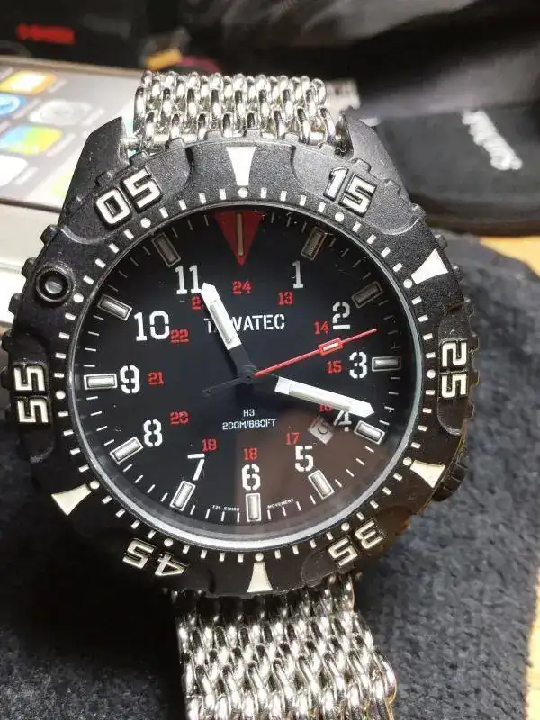 Hoy saco este diver (200 metros) con tritio, increible (a mi gusto mejor que luminox), con mecanismo ronda y muy tactico. Caja de `policarbon