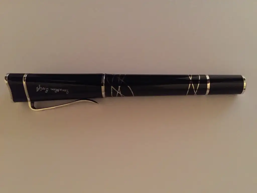Para esta estilográfica empleamos una Iroshizuku Shin-Kai que es un azul oscuro y viene a ser su nombre "mar profundo", y dada la estilográfica viene ideal.