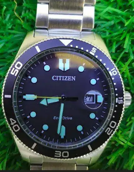 En primavera cayó el Citizen (duda: es un diver?) que aún no conoce la piscina. Lo vi en la contraportada de un periódico y pensé: "para una vez que veo aquí un reloj que me puedo permitir...". Es un cuarzo con aspecto clasicorro.