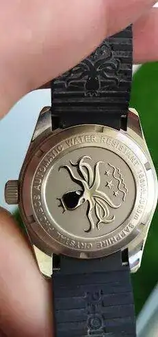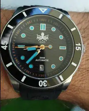 Con el Phoibos llevo un par de años y el verano que llegó no salió de la muñeca, le di una sesión intensiva de piscina. Es un mecánico con detalles muy aparentes (la trasera, sobre todo) y con estética que me gusta bastante; el tamaño es tirando a contenido (no es el típico diver de 45 mms.)Desgraciadamente hace poco comprobé que tiene un rayón en el cristal (pero no era que el cristal de zafiro era casi irrayable??) Supongo que lo rocé con algún diamante.
