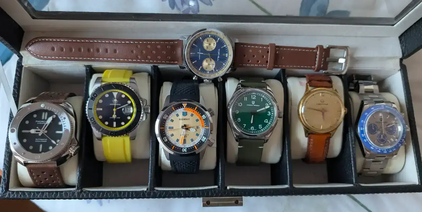 Te pongo un único "pero": salvo que me rejuren que esos vintage han pasado una revisión reciente, un reloj antiguo nada más comprarlo lo llevaría a revisión... Lo digo porque al menos habría que sumar seis limpiezas (a su precio) a esos seis vintages.Y se puede hacer por 500 euros una colección de 6 suizos incluyendo Certina y Tissot. Vintages, por supuesto. Lo que pasa es que requiere más conocimientos pero en el foro los hay, estan a una pregunta de distancia