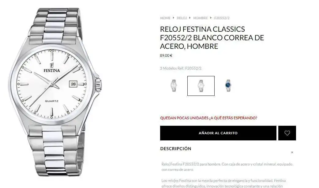 - Tamaño contenido, a día de hoy el único reloj qué usa es de 34mm.