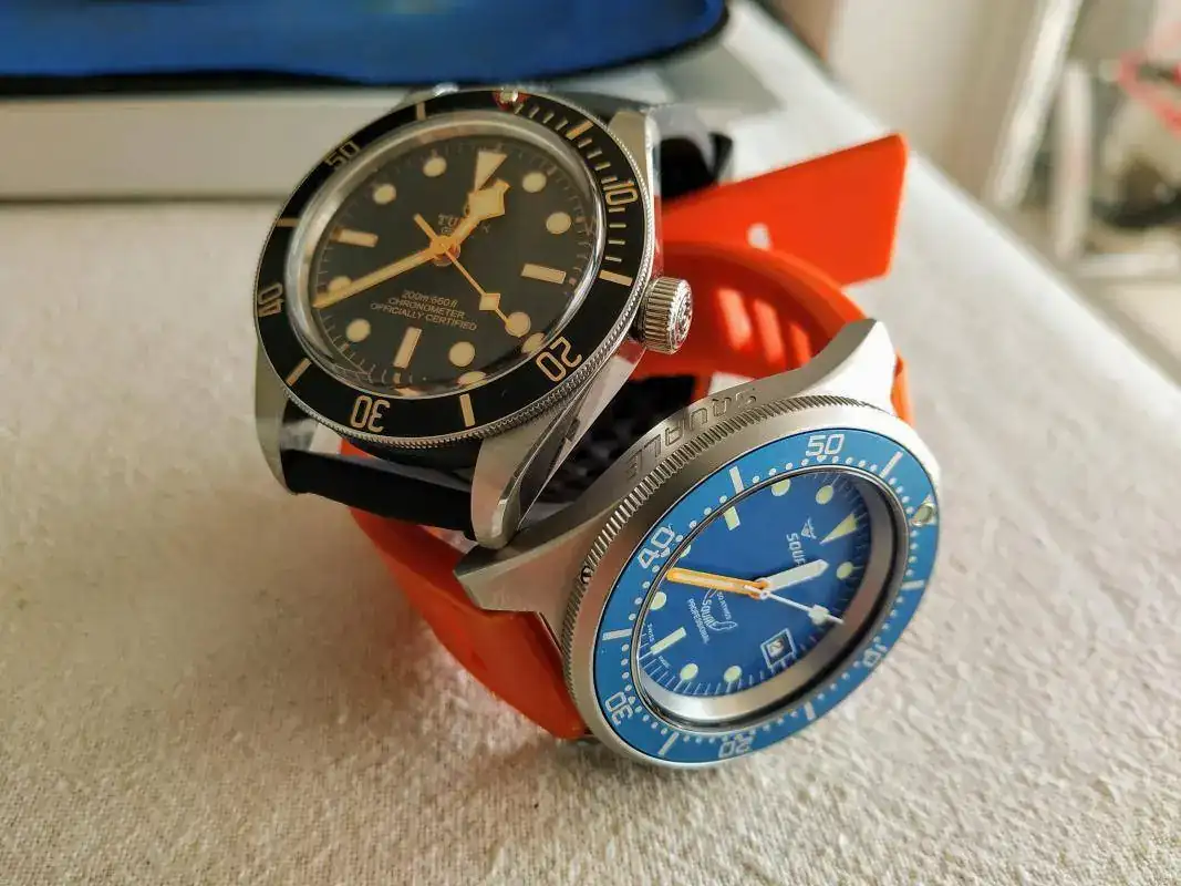 Notorio es también que ambas versiones CARECEN TAMBIÉN de certificación internacional ISO 6425 a pesar de que el origen de la firma se remonta al 1948. Squale llegó a servir cajas a firmas del calibre de Blancpain, Tag Heuer, Doxa o Sinn (solo para citar algunos de la larga lista) y en el 1974 Squale decidió comercializar sus relojes, de forma independiente, exclusivamente con su logo.