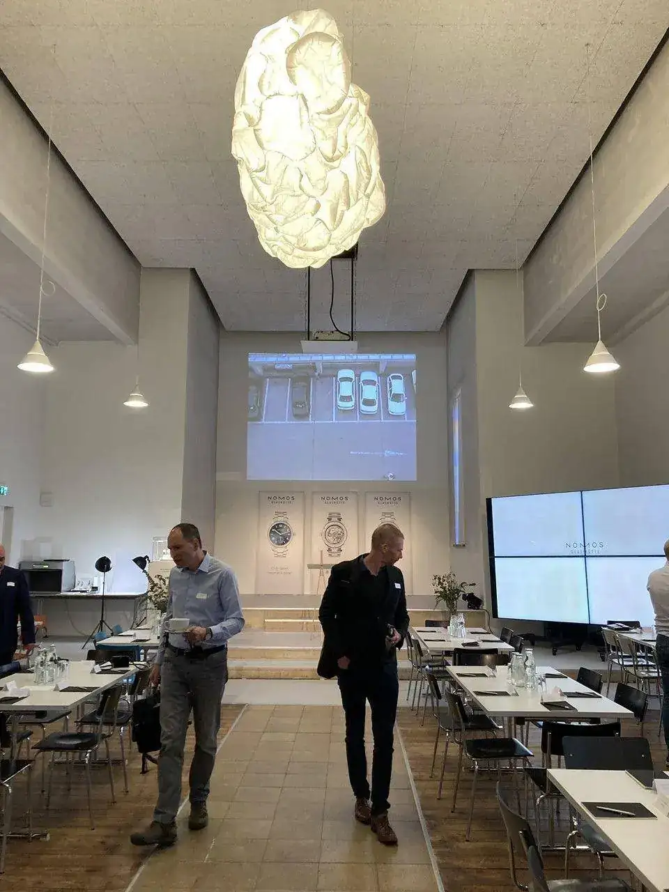 Y empieza el Tercer Foro Nomos donde, entre otras cosas, nos explicarán el éxito conseguido -por Nomos- para que la denominación de origen Glashütte sea econocida y protegida oficalmente por el Estado alemán, las estrategias de comunicación de la marca en base a los vídeos que estáis viendo y, por supuesto, la presentación de novedades, que a estas alturas casi todos conocéis ya. El ponente del estrado es Mirko Heyne, el jefe de Theo Prenzel, al que vimos por la mañana, en la primera parte, que nos contó diversos detalles técnicos de los calibres. Detrás de él, lo que nos esperaba.